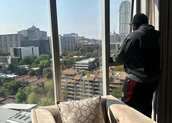 Die 3-Zimmer-Ferienwohnung Spacious 2Br Apt Near Sandton City -No Loadshedding Johannesburg liegt in der Nähe von verschiedenen Attraktionen der Stadt: Benmore Gardens Shopping Centre befindet sich unter anderem einen 5-minütigen Spaziergang von hier entfernt. Diese 96 m^2 großen Apartments verfügt über einen Dachpool und eine Terrasse mit Blick auf die Berge.